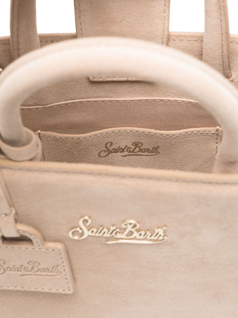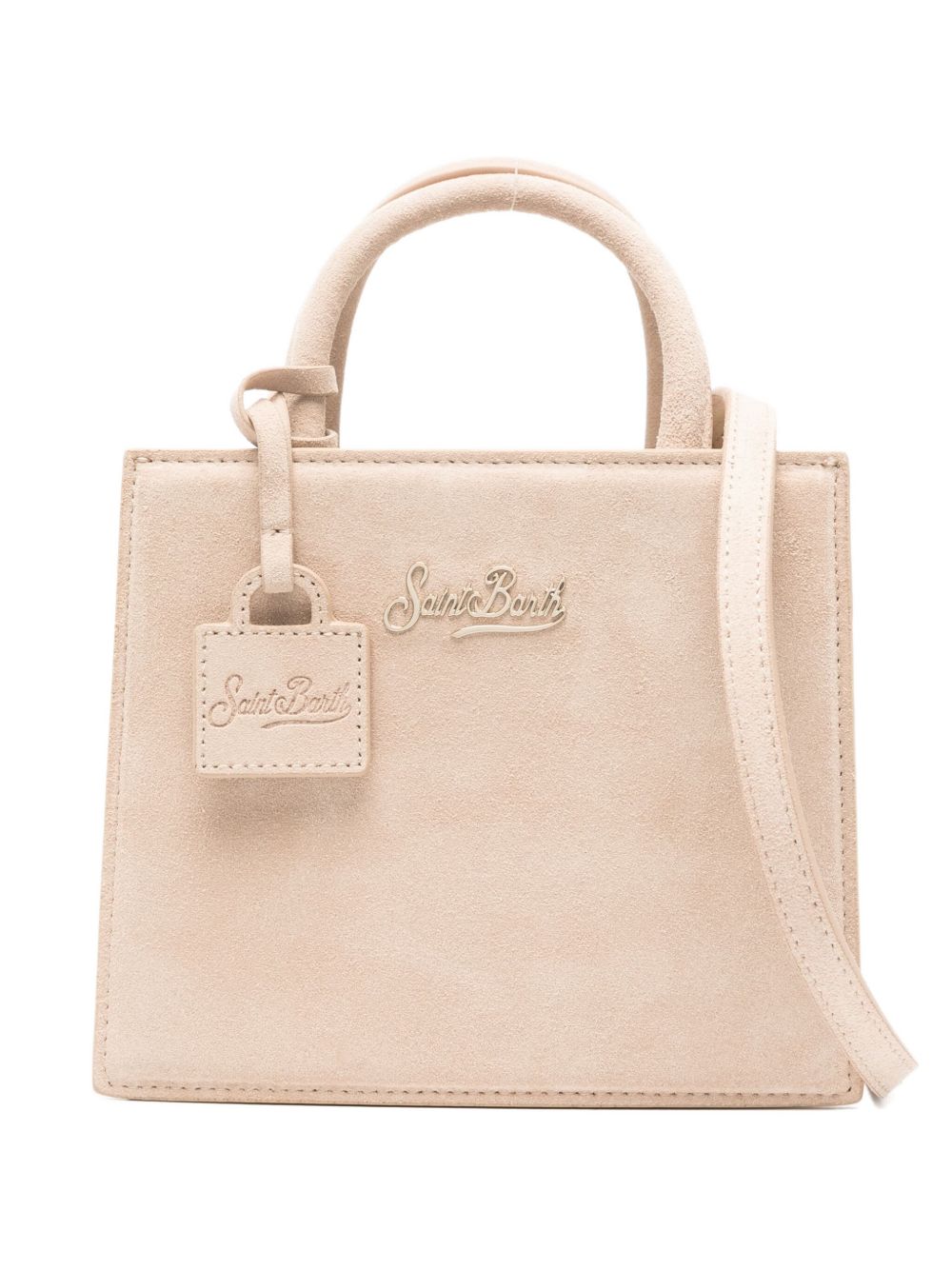 Borsa tote Shop mini di Mc2 Saint Barth colore beige, pelle di vitello scamosciata, due manici tonditracolla rimovibile, logo in letteredettaglio etichettaComposizione: Pelle di vitello 100%