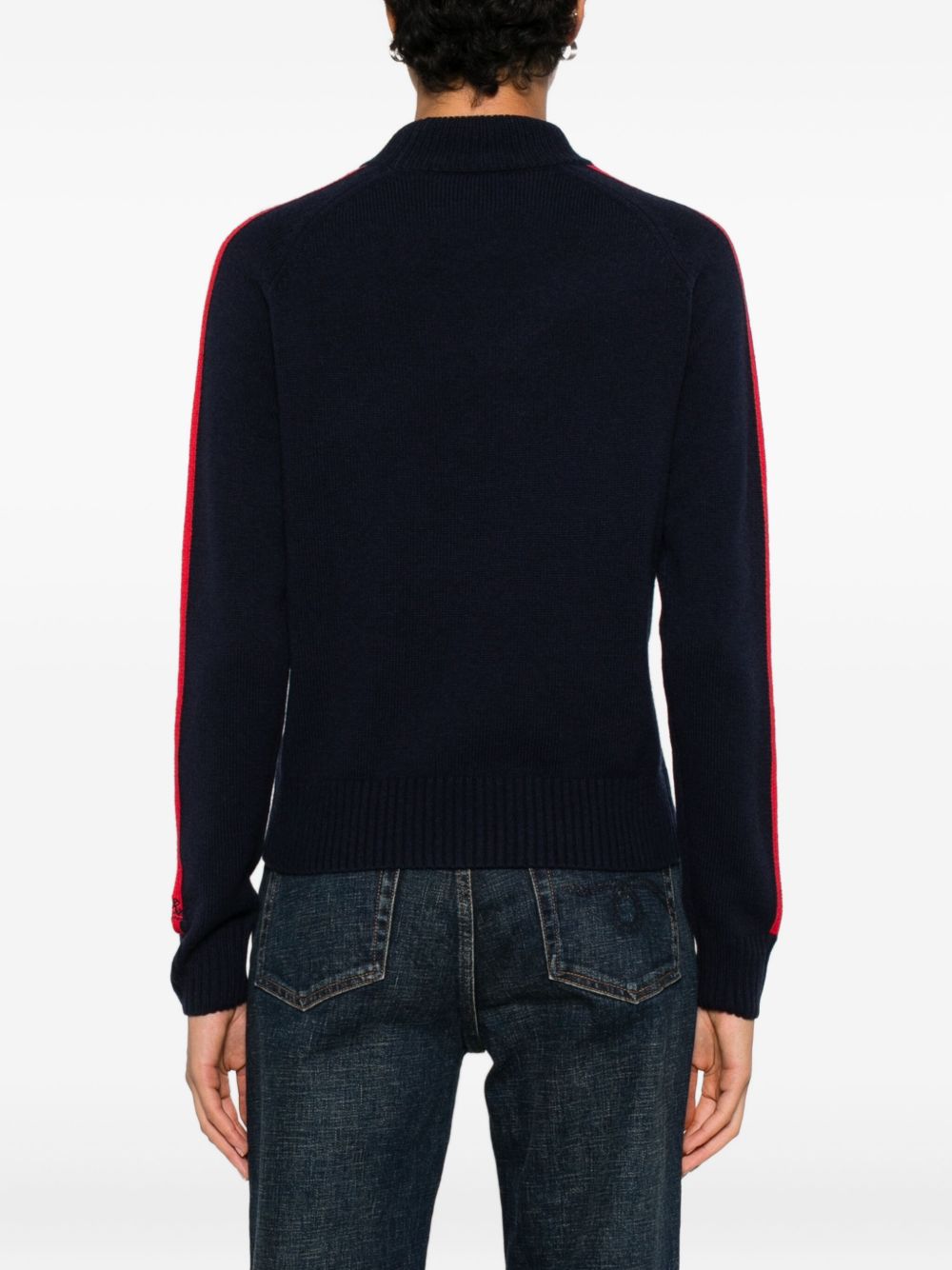 Maglione con maniche raglan di Mc2 Saint Barth colore blu, dettagli a righe, girocollomaniche lunghe, design lavorato a magliaorlo a costeComposizione: Lana 40%, viscosa 25%, poliammide 25%, cashmere 10%