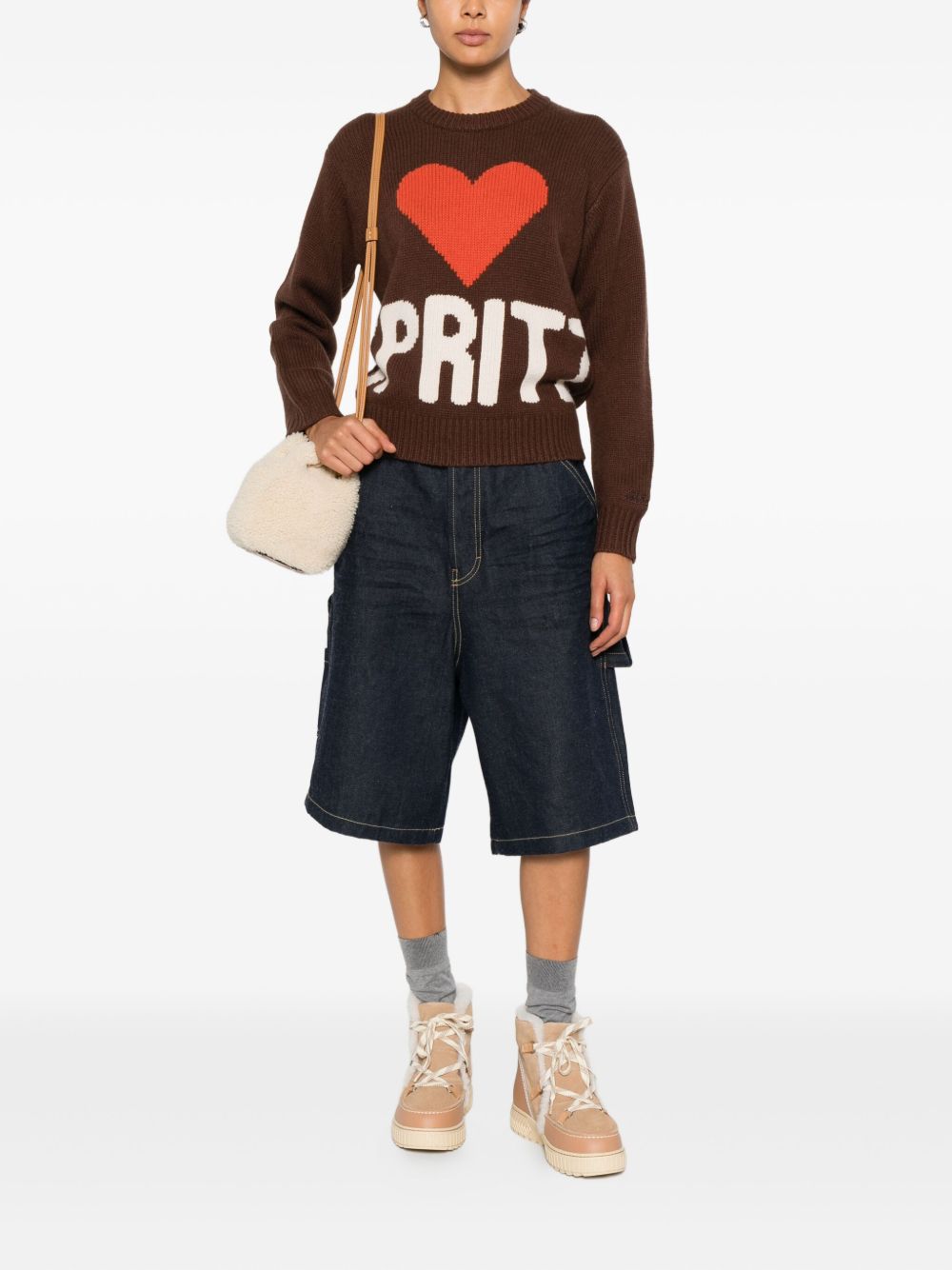 Maglione con scollo rotondo di MC2 Saint Barth colore marrone scuro, lavorazione a magliamotivo a cuori, girocollo, maniche lungheorli a costeComposizionetessuto 100%