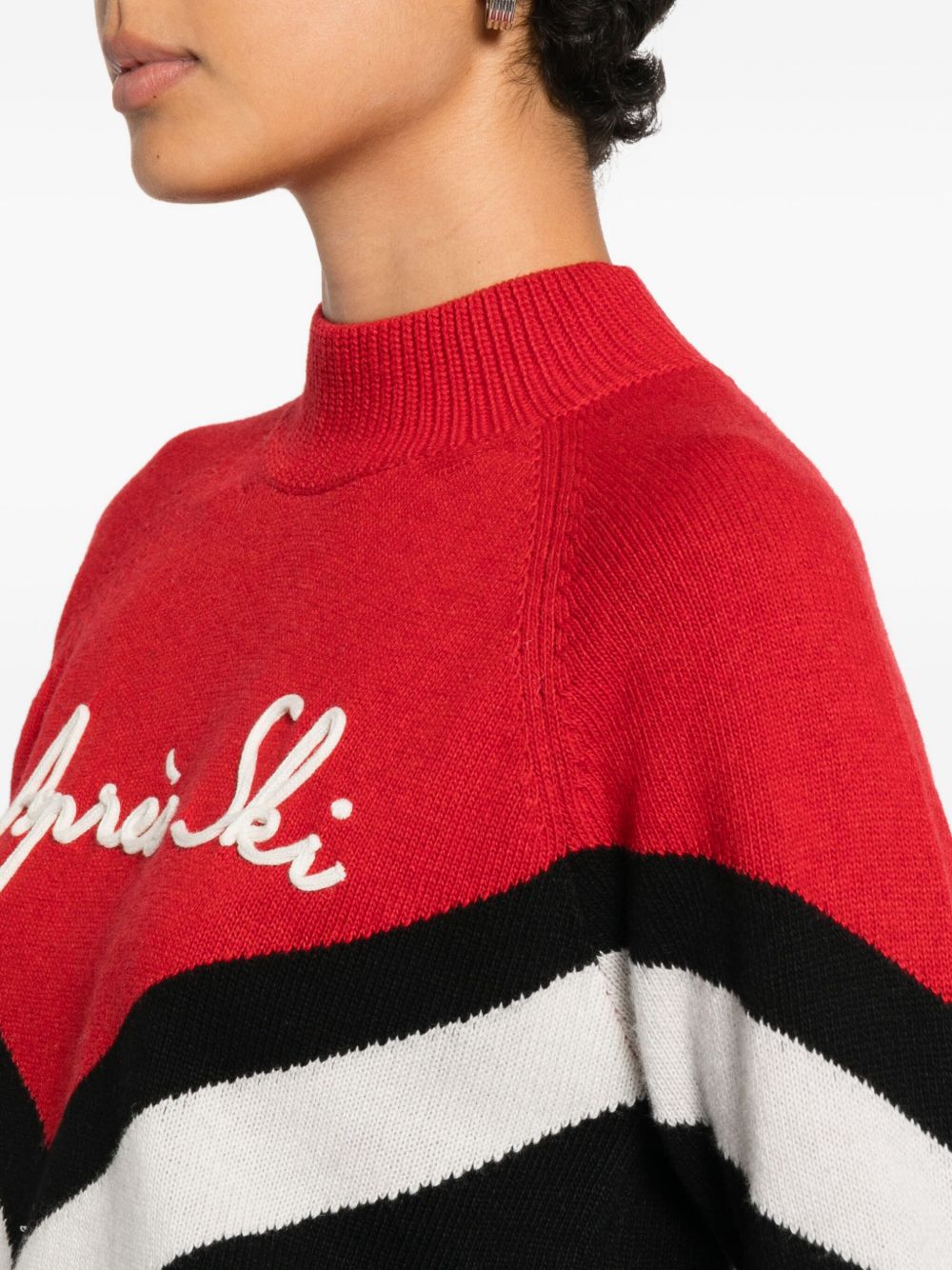 Maglione con scollo rotondo di Mc2 Saint Barth colore rosso e nero, motivo chevron, girocollomaniche lunghe