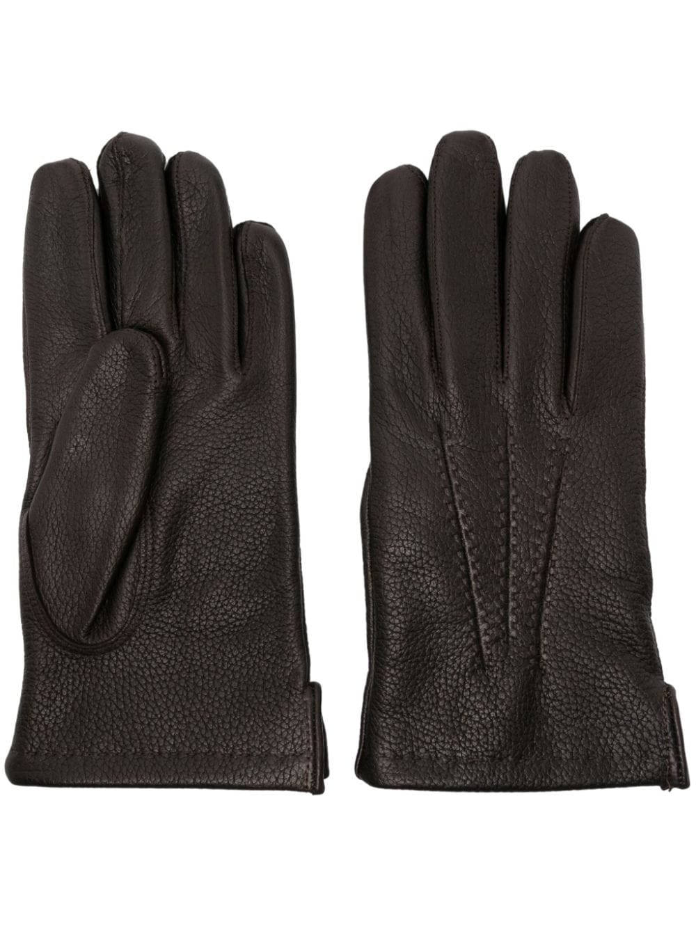 Guanti testa di moro di Orciani, in pelle martellata con fodera in cashmere.