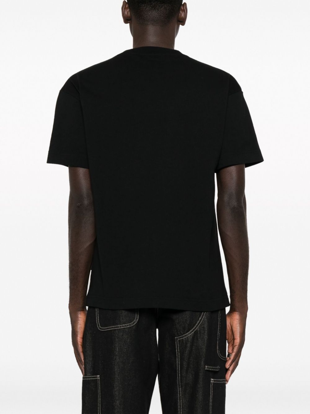 T-shirt Palm Angels nera effetto vintage, modello girocollo, manica corta, con stampa sul petto.