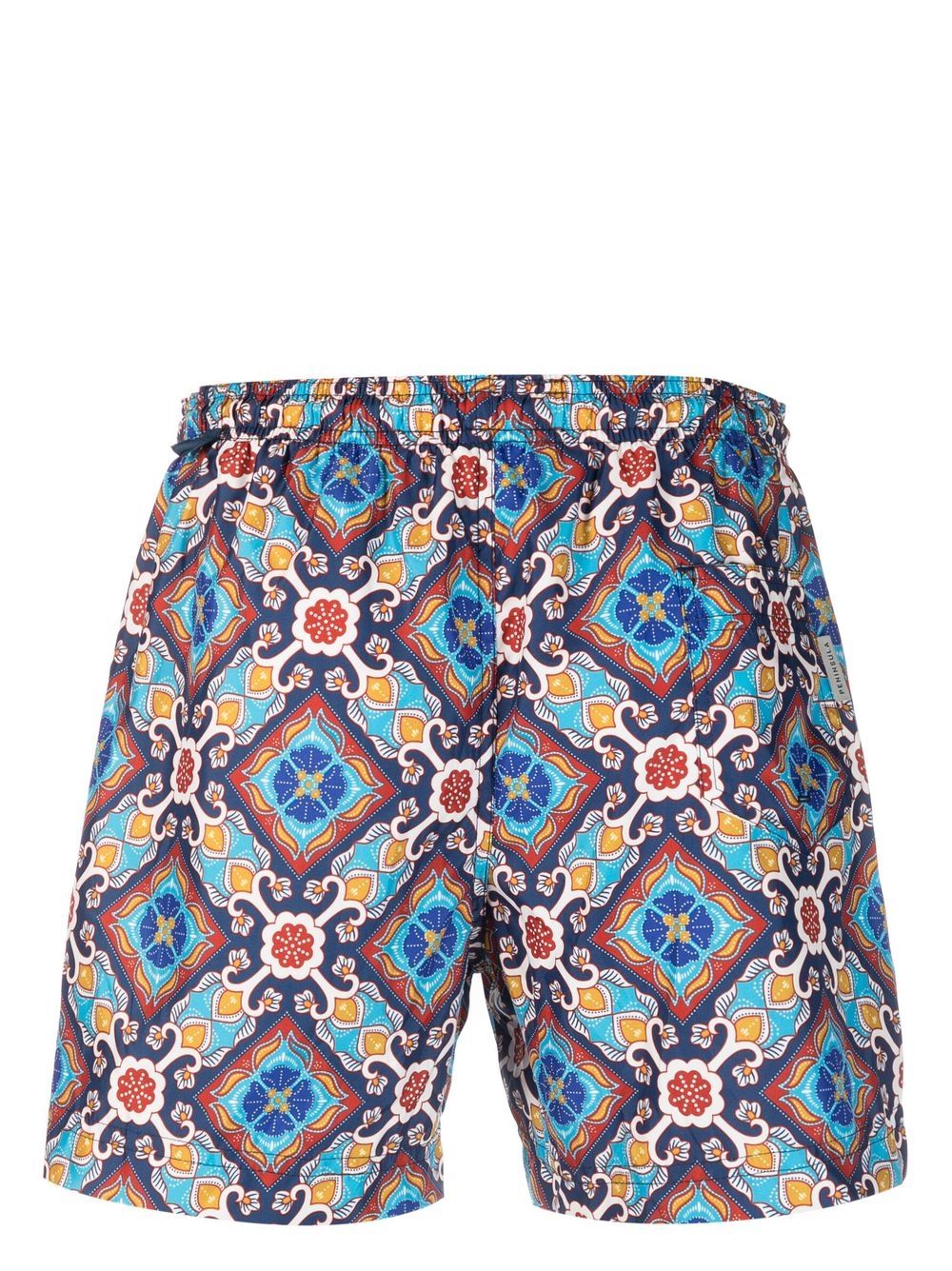 Costume Peninsula, modello Positano V1, con elastico e coulisse in vita, fantasia multicolor.