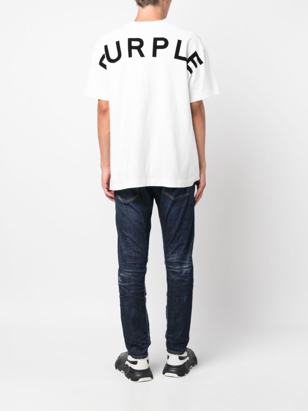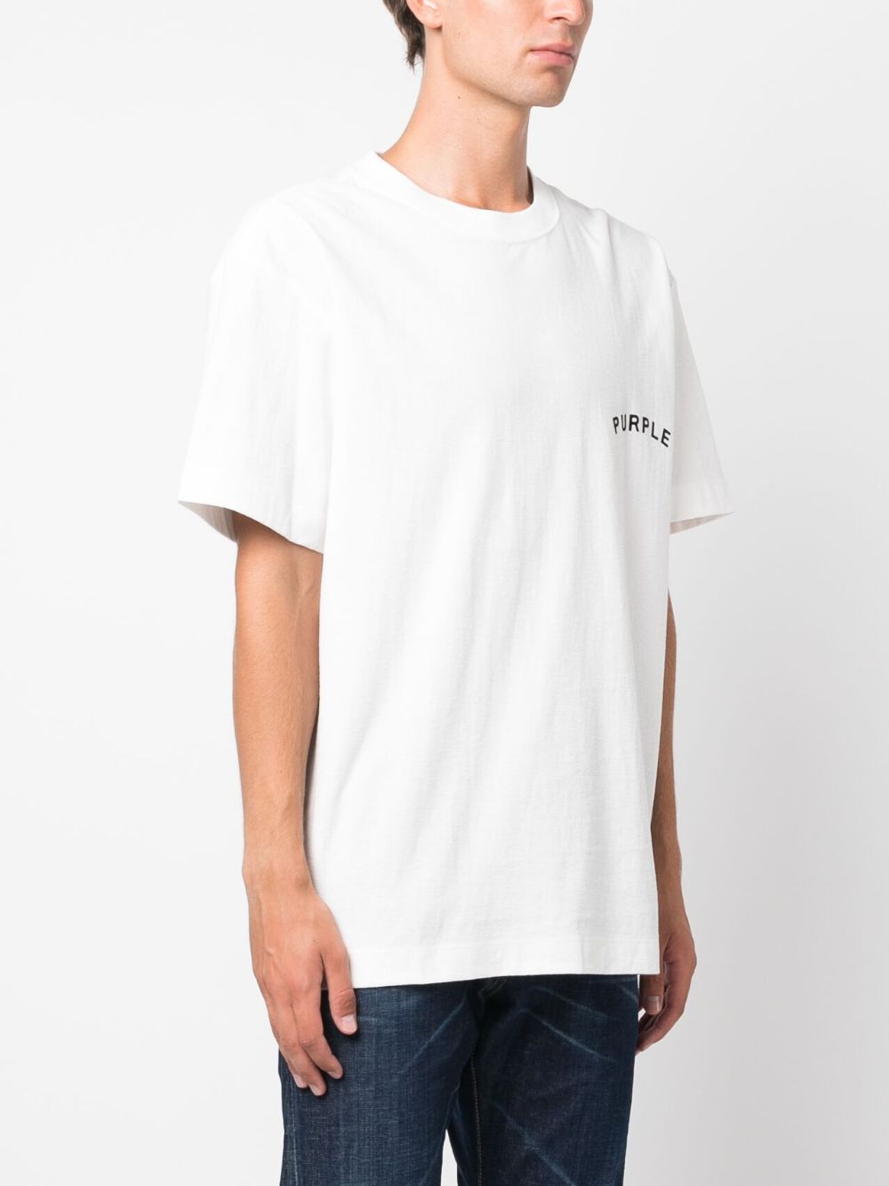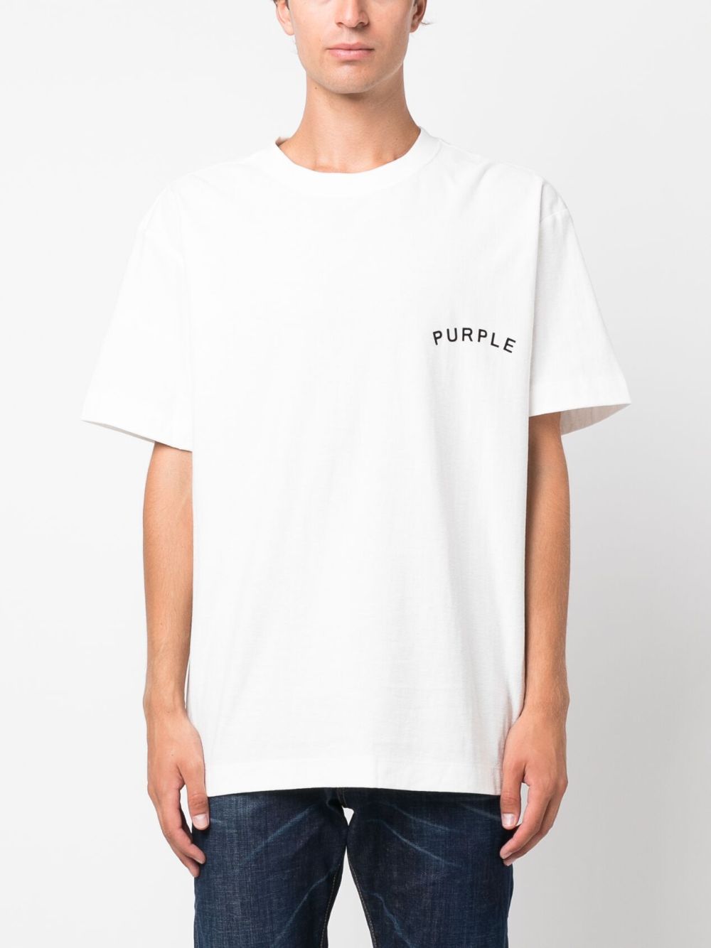 T-shirt Purple Brand bianca, modello girocollo, manica corta, con logo sul petto e macrologo sul retro.