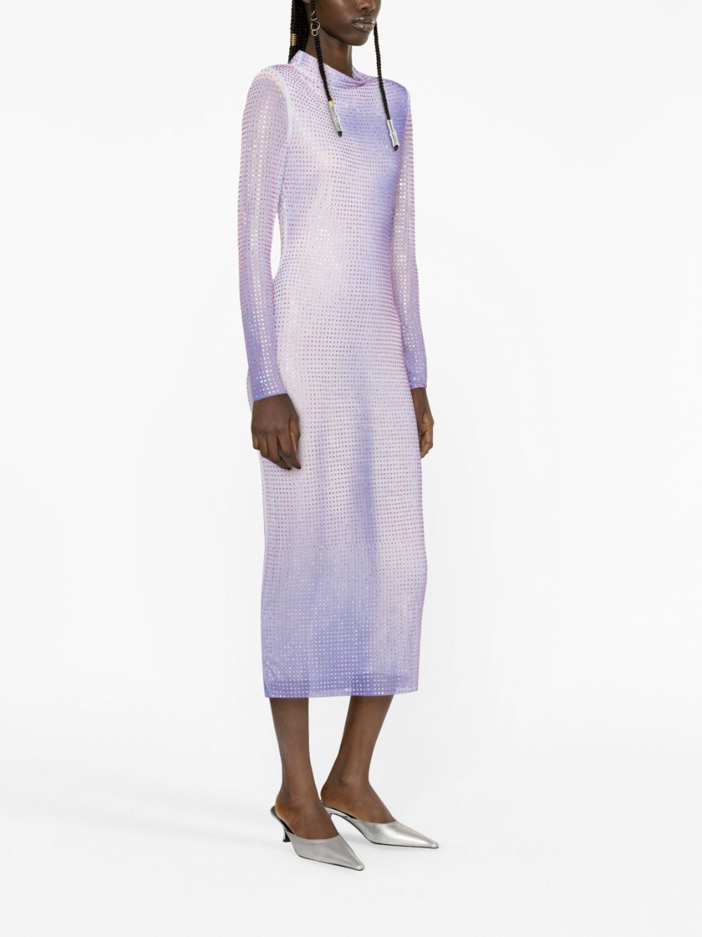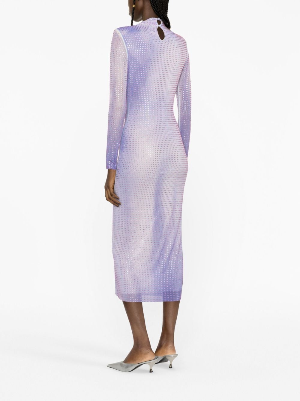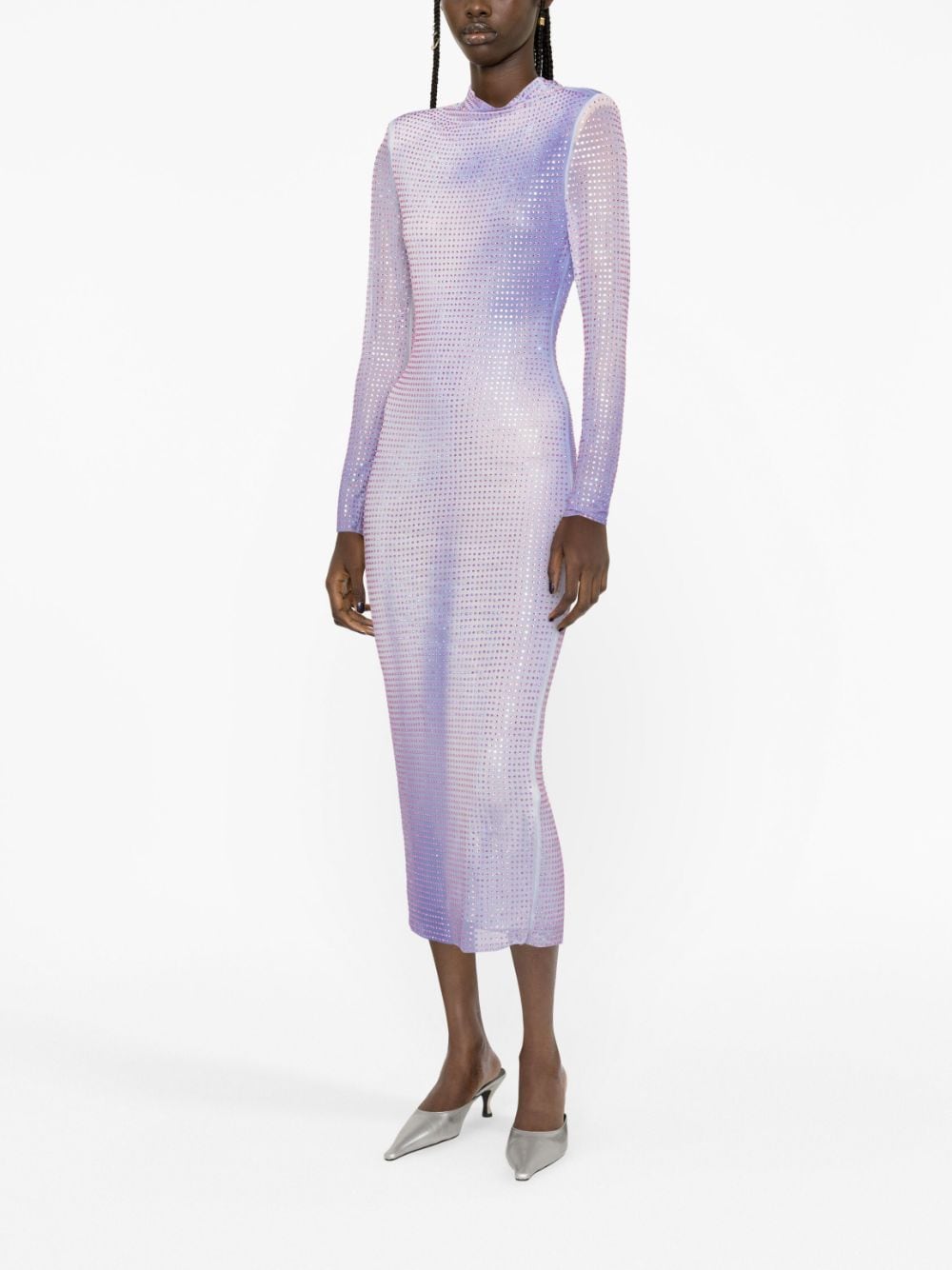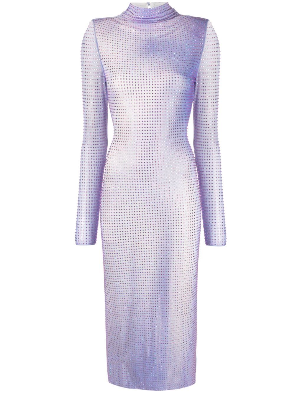 Abito con strass di Self Portrait color lilla, design elasticizzato, decorazione con diamanti sintetici, collo a lupetto, maniche lunghe e lunghezza media.Composizione: Poliestere 95%, Elastam 5%